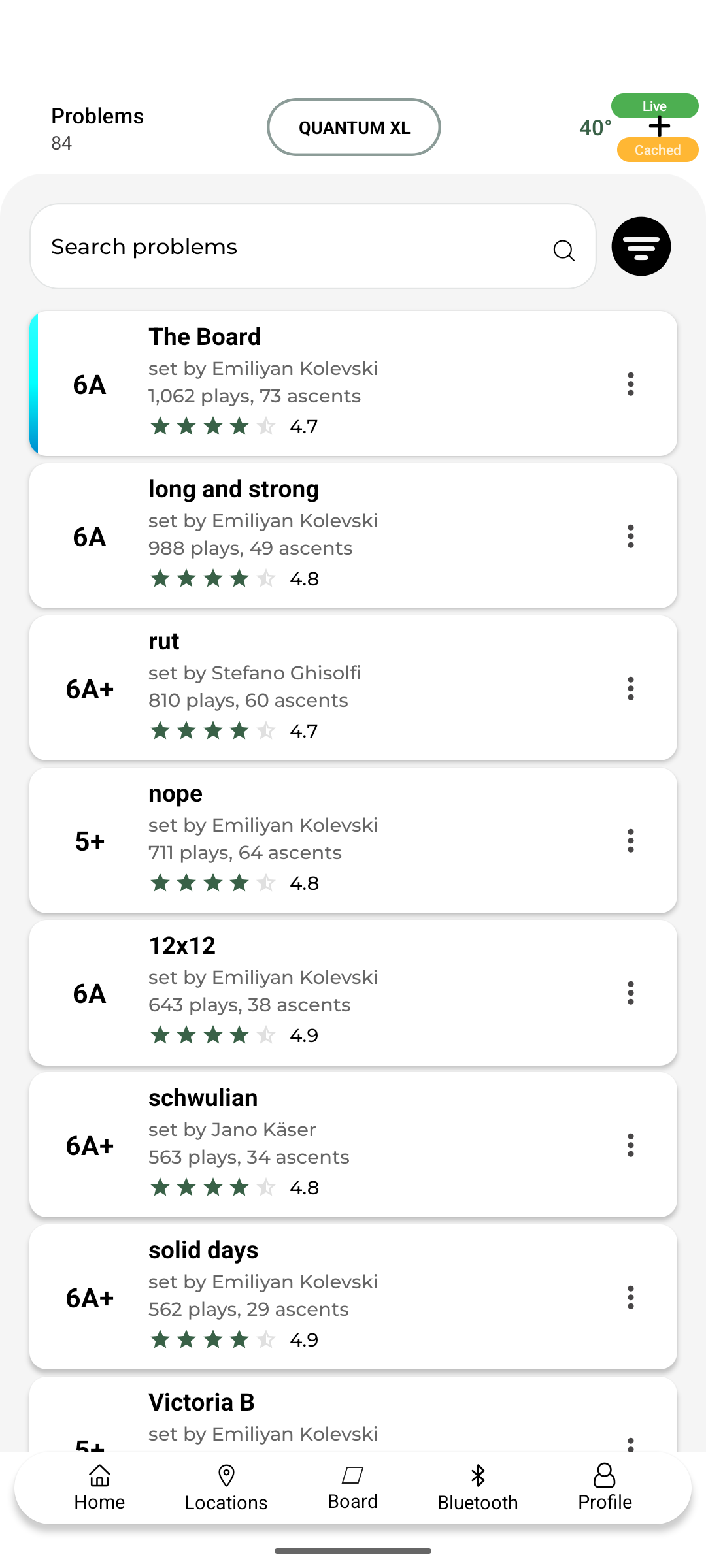 Connect to the Quantum Board play & log climbs, set new problems.